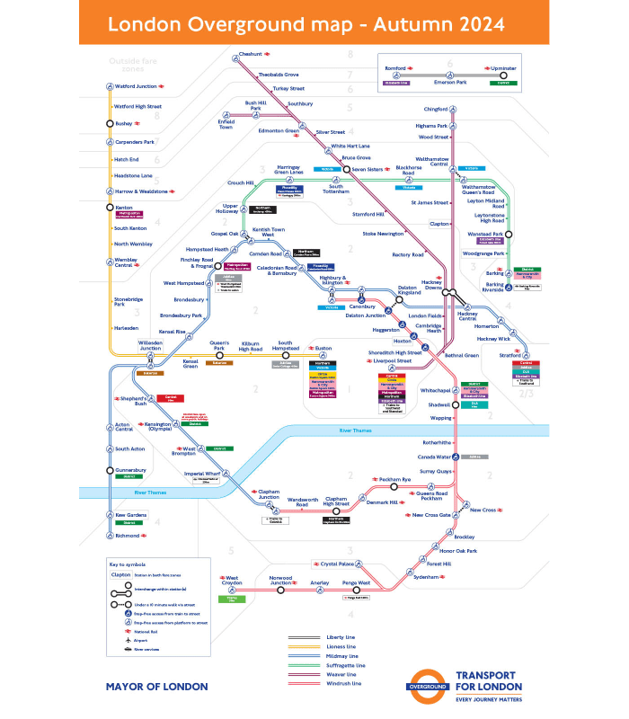I couldn’t put in anything else, really. This is the new map of the Overground network in London, with the lines renamed and recoloured. And it looks great. I also happen to love the names. I recommend downloading the new Tube Map and Map of the Overground Lines.