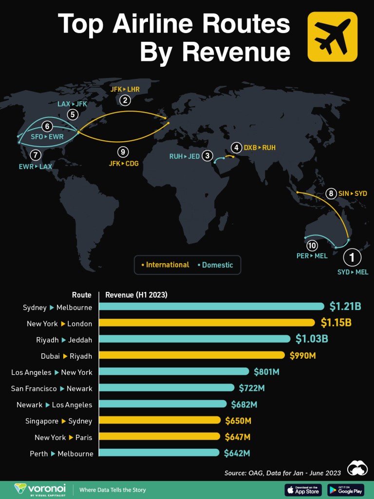 Top air routes by revenue (Source: Visual Capitalist)