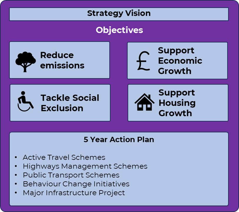 The typical transport strategy looks like something along these lines. With very distinct sections setting out objectives, and then the delivery plan. Simple, has been used for years. What’s not to love?