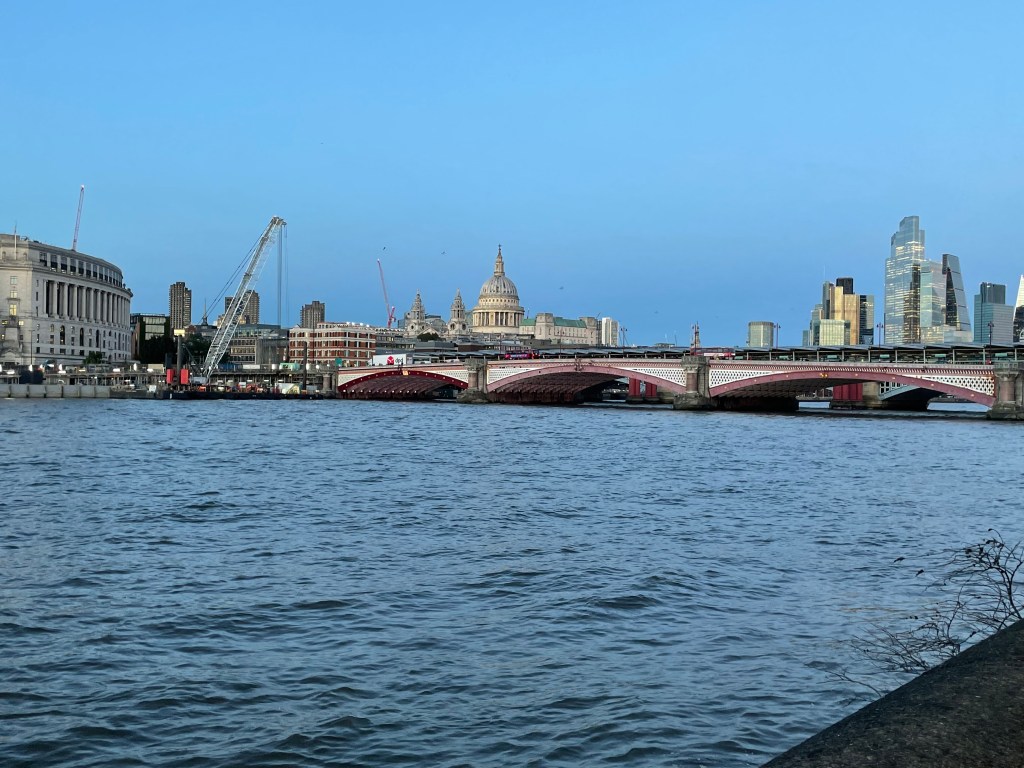 Finally, on the way back, I walked along the South Bank between Waterloo and Blackfriars. And took a picture of this rather lovely scene of St Paul’s Cathedral. I like it.