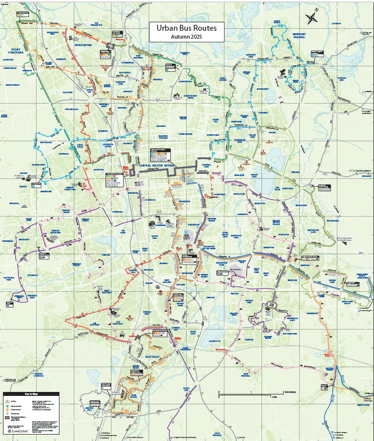The current urban bus routes in Milton Keynes (Source: Milton Keynes Council)