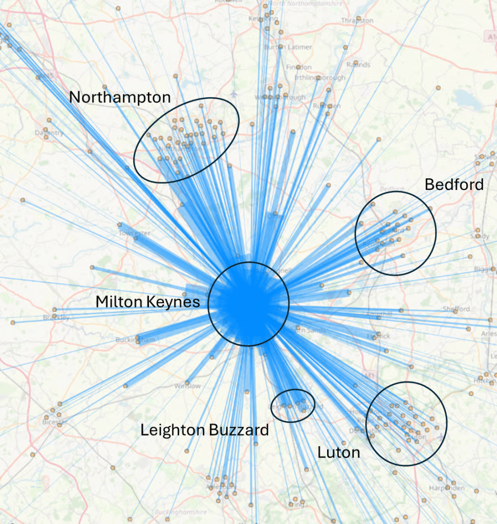 While modern urbanists crave walkability and street life, the rationalist observes that CMK functions as a regional economic hub with ruthless efficiency. It draws labour and capital from a massive catchment area because it is accessible. You may say that this is a result of its size – it’s a city of 250,000 after all – but with several medium-to-large sized towns within a reasonable travel time (Oxford, Northampton, Bedford, Bicester, Aylesbury, Luton, Leighton Buzzard, and Rugby to name a few), its success was not nailed-on.